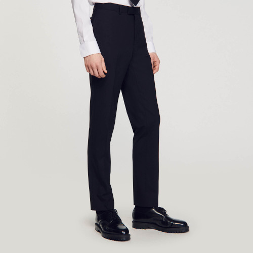 Wool suit trousers with a classic cut and pockets.
