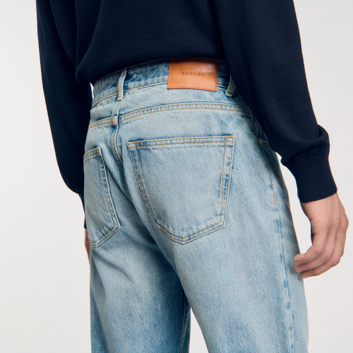 Regular-fit jeans with five-pocket design, leather jacron on the back, and faded details on front