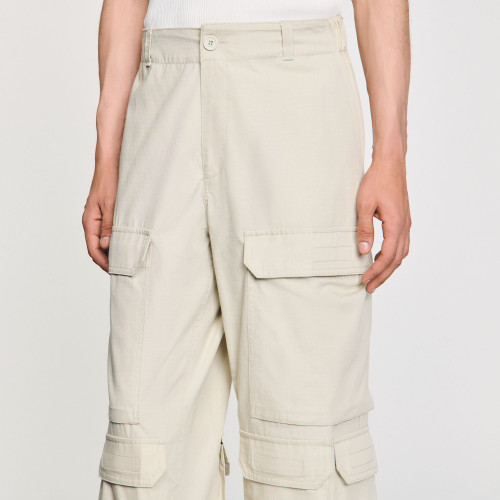 Wide-leg cargo trousers with micro grid pattern, multiple pockets and belt loops.