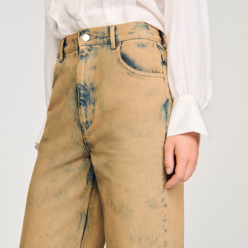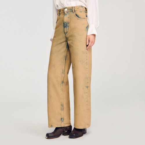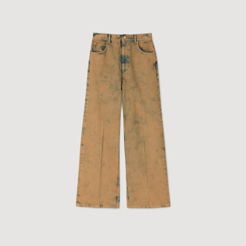 Wide-leg jeans with vintage wash, belt loops, zip fastening with button and five pockets.