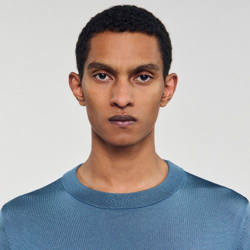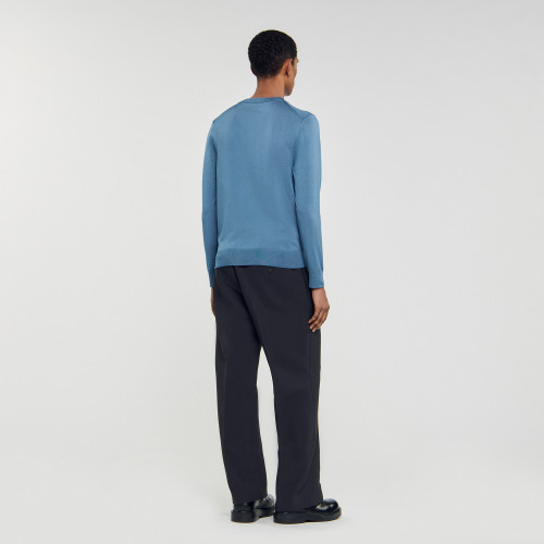 Fine knit jumper with round neck and long sleeves.