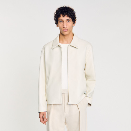 Lambskin jacket with shirt collar, zip fastening and front pockets.