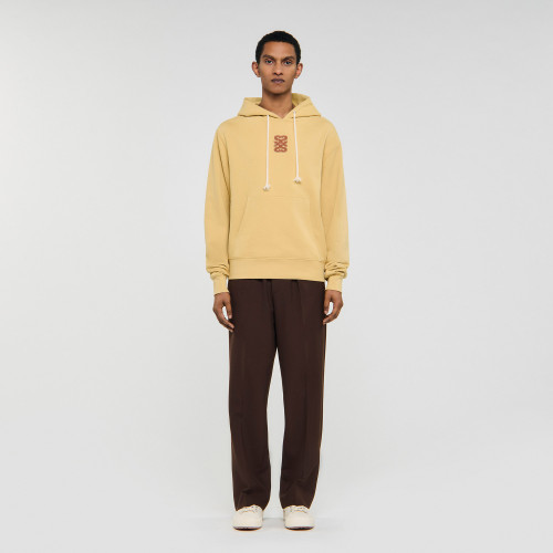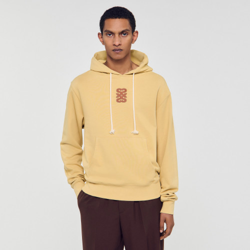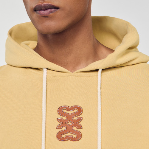 Oversized sweatshirt in non-brushed fleece, with a hood with braided drawstrings, long sleeves, a front pocket and a leather 4S patch on the front.