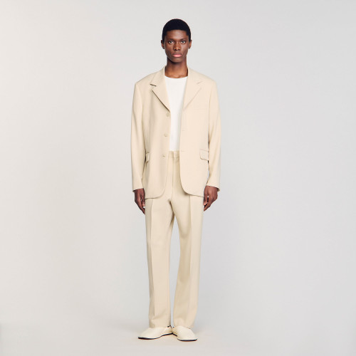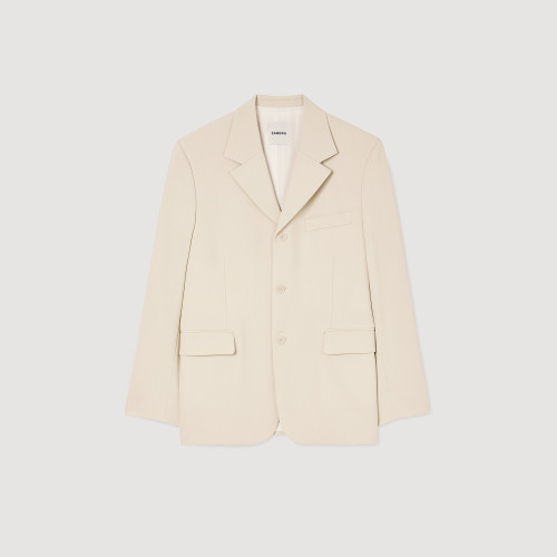 Oversized wool suit jacket with long sleeves, button fastening and back vent.