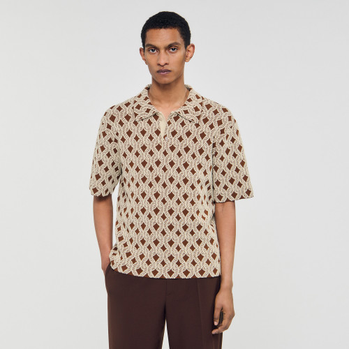 Terry effect cardigan shirt with rope jacquard, featuring short sleeves and a button fastening.