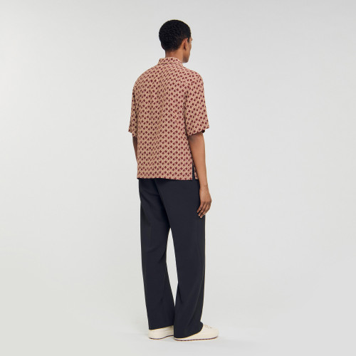 Flowing printed shirt adorned with a rope motif, featuring a broken collar, short sleeves, and button fastening.