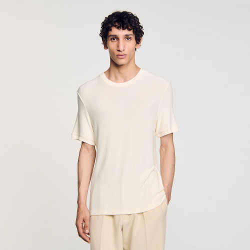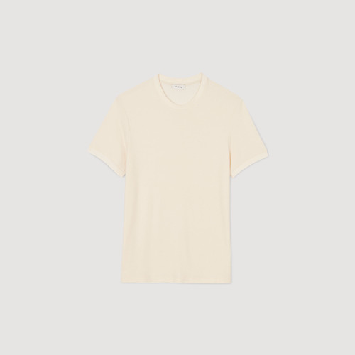 Light, short-sleeve round neck T-shirt.