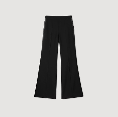 Straight-leg suit trousers with a slightly flared hem and a contrasting satin stripe on the side.
