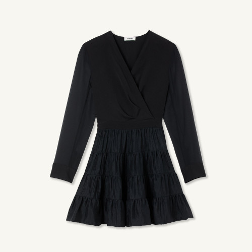 Short dress with dual materials