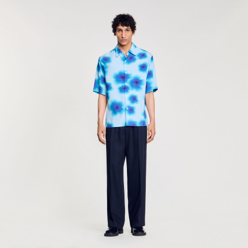 Short-sleeved shirt, classic collar and button placket, with floral motif