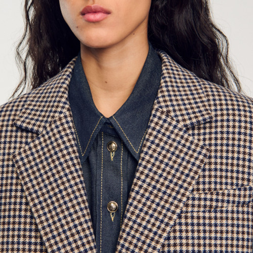 Suit jacket with a pattern of small checks, a lapel collar, long sleeves and a button fastening.