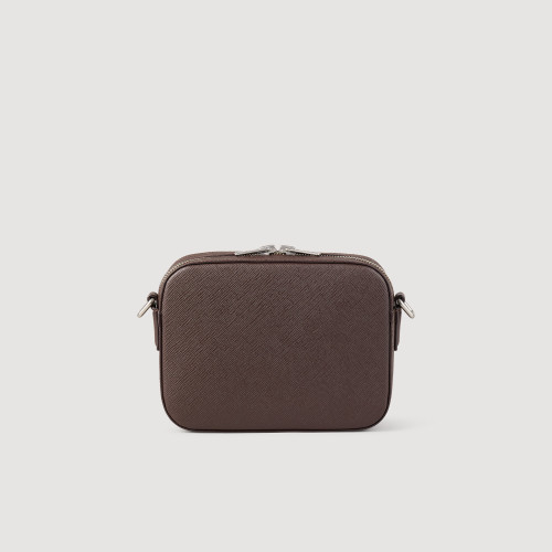 Small synthetic leather bag with Saffiano motif, zip fastening, long adjustable shoulder strap and embossed SANDRO signature logo.