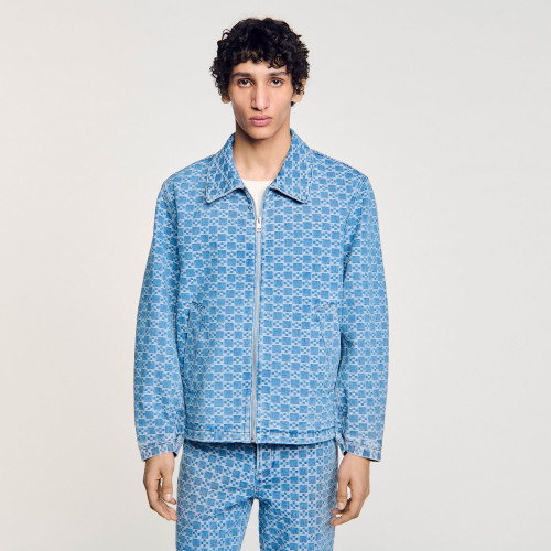 Square Cross jacquard denim jacket with lapel collar, long sleeves and zip fastening.