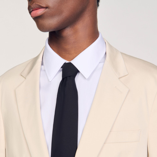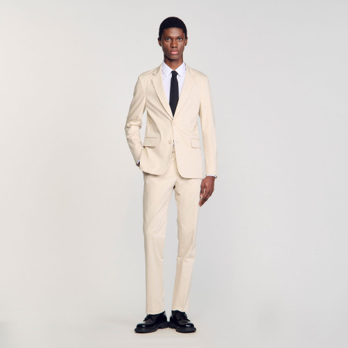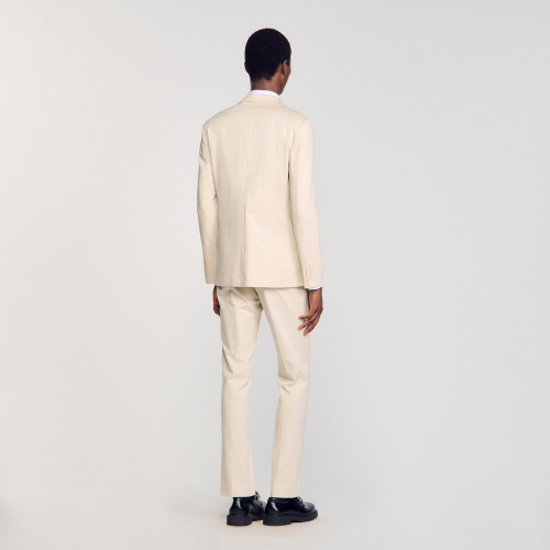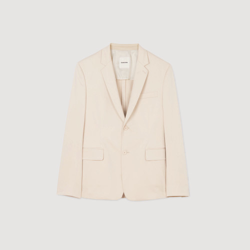 Long-sleeved, unstructured, regular-fit cotton suit jacket with flap pockets.