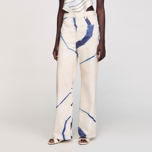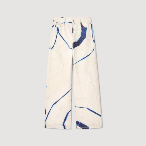 Spiral-motif wide-leg jeans, with mid-rise waist and belt loops.