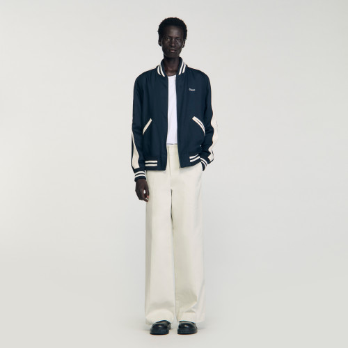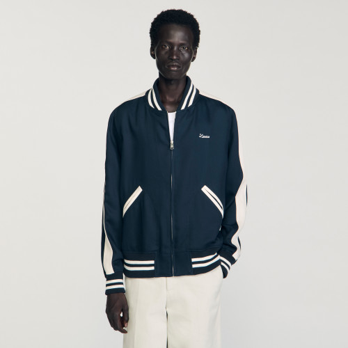 College-style varsity jacket with contrast stripes, zip fastening, long sleeves and signature embroidery on the chest.