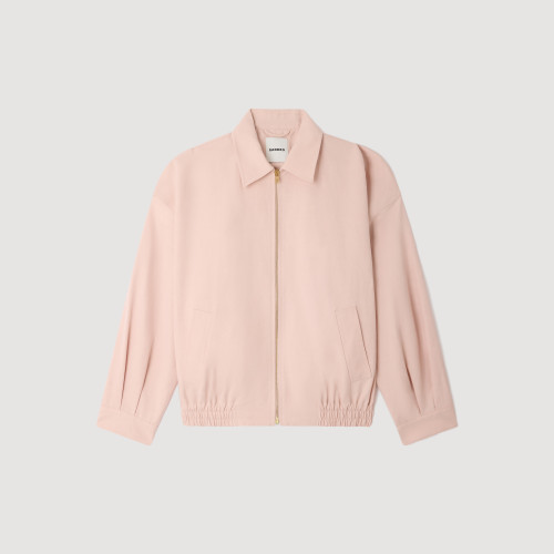 Wide jacket in a plain cotton and linen blend with shirt collar, long sleeves and front zip fastening.
