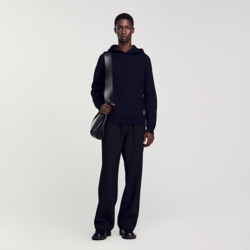 Hoodie with long sleeves, front pockets and leather patch on the side.