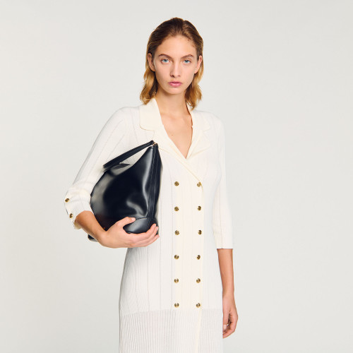 Calfskin leather bucket bag, carried on the shoulder, by hand, or crossbody, with a magnetic fastening.