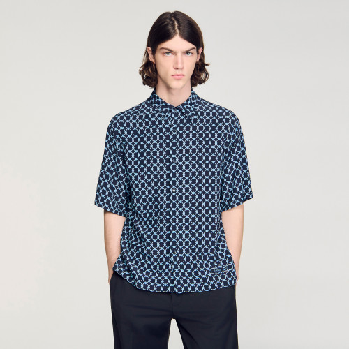 Loose-fit shirt with link pattern, featuring a wing collar, short sleeves and button fastening.