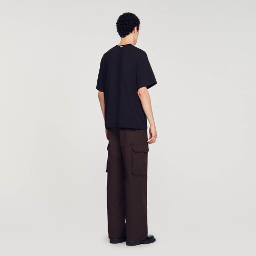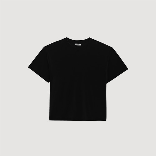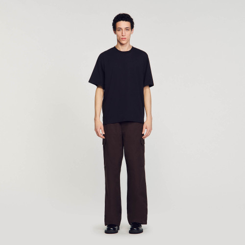 Oversized cotton T-shirt with round neck and short sleeves.