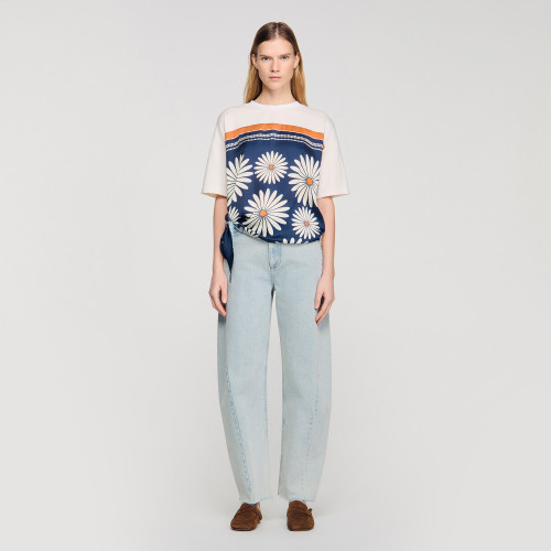 Cotton T-shirt with round neck and short sleeves, embellished with a bandana-print halterneck panel that ties at the side.