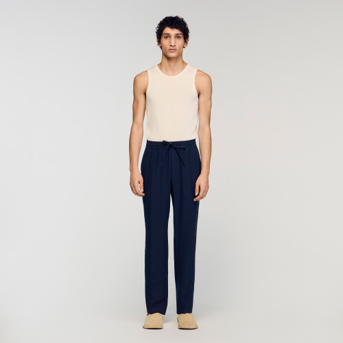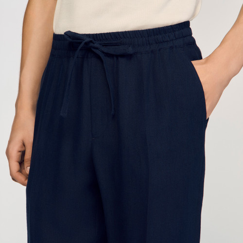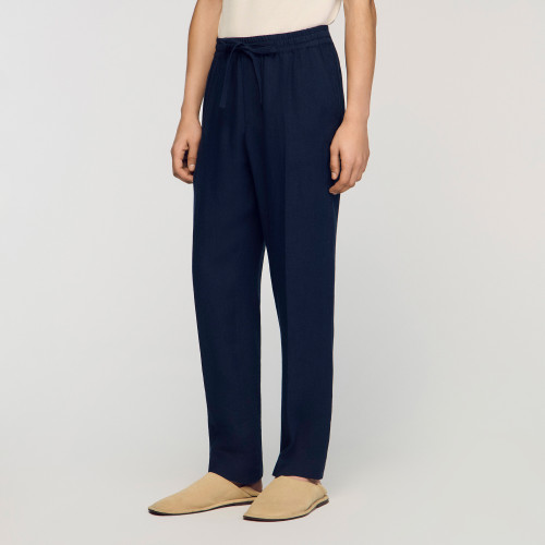 Classic-fit linen trousers with an elasticated waist and drawstring.