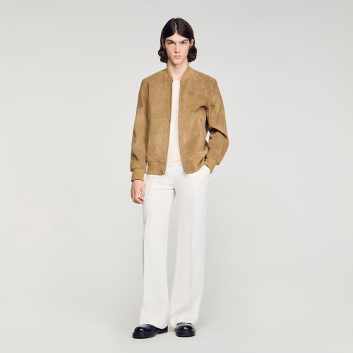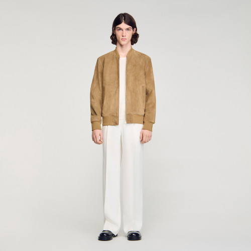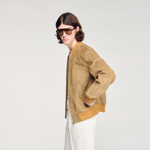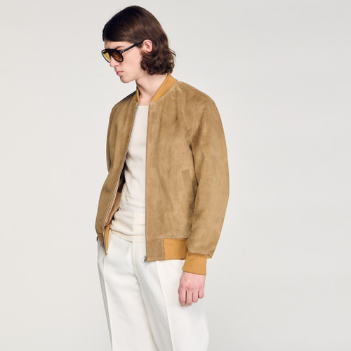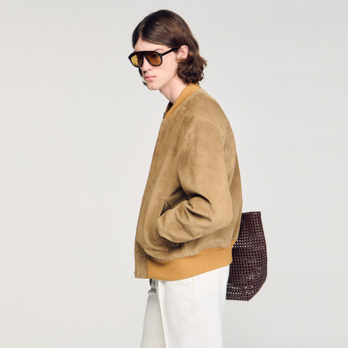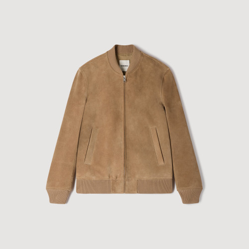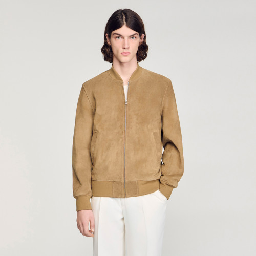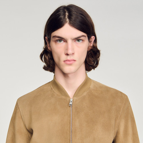 Suede jacket with a varsity collar, long sleeves and a zip fastening, with ribbed trim.
