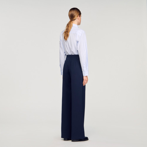 Wide-leg, straight-fit high-waisted trousers with an asymmetrical front panel and press-stud fastening.