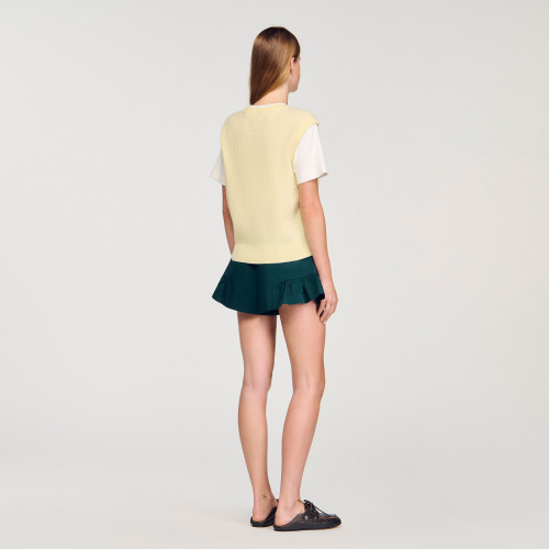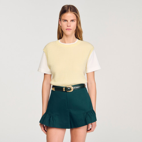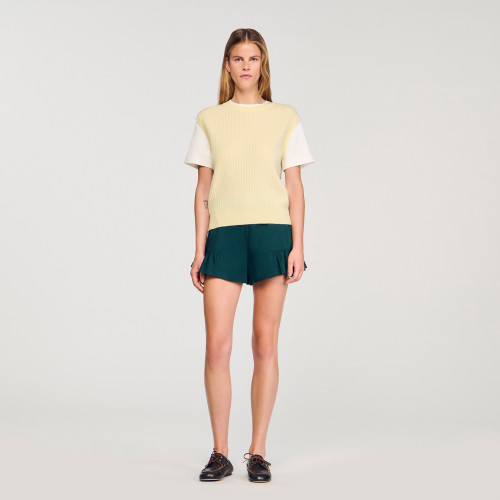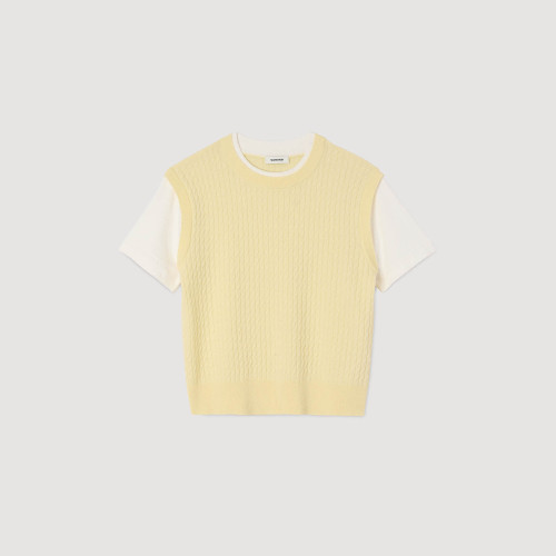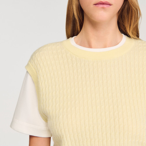 Layered-look jumper made of a wool and cashmere blend rib knit, with a contrasting round neck and short sleeves.