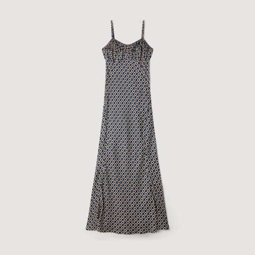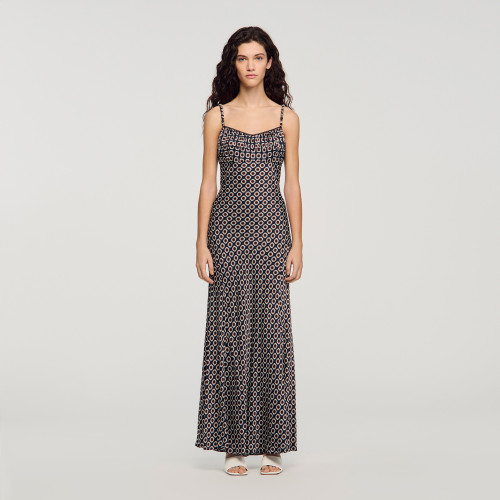 Floaty, lingerie-style printed maxi dress with straps and a lace-up back.