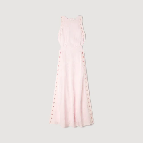 Floral jacquard maxi dress with tone-on-tone trim, round neckline, openwork details on the sides, a fitted top and a floaty, flared skirt.