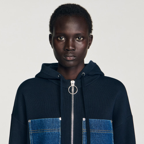 Sandro Women's mixed denim knit sweatshirt
