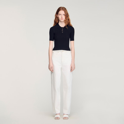 Decorative knit jumper with polo collar, short sleeves and button fastening on the front.