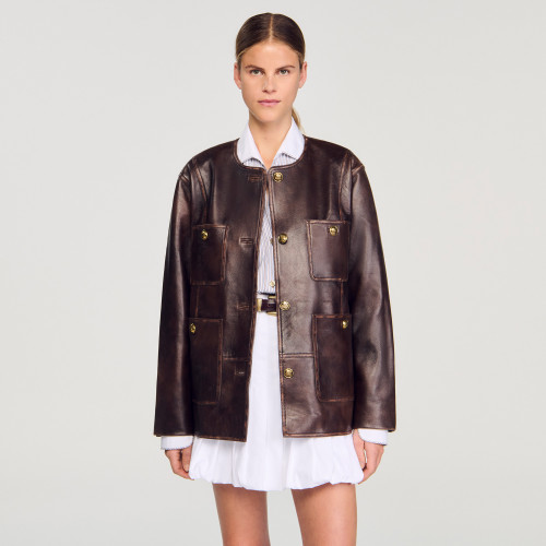 Brown oversized leather jacket