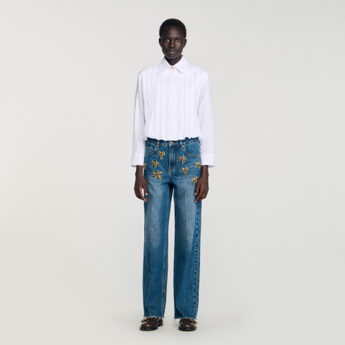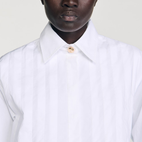 Cropped shirt with flared pleats, long sleeves with buttoned cuffs, shirt collar and button fastening.