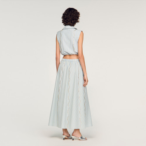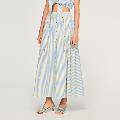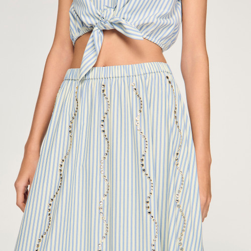 Long, flared striped skirt with wave-set rhinestones and a high elasticated waist.