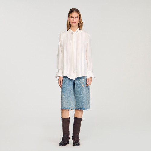 Silk shirt with a lavallière collar, long sleeves with buttoned cuffs and a button fastening.