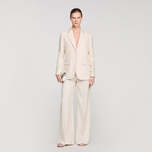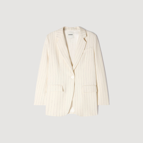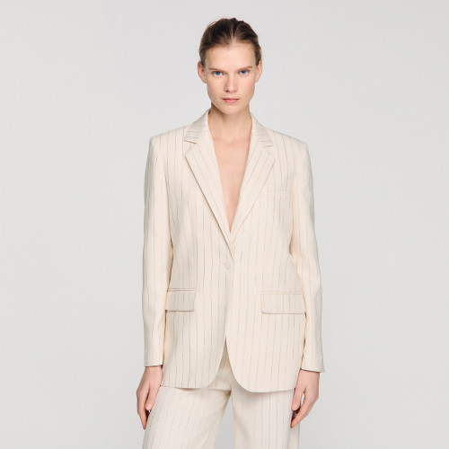Striped suit jacket with a tailored collar, long sleeves and a front button fastening.