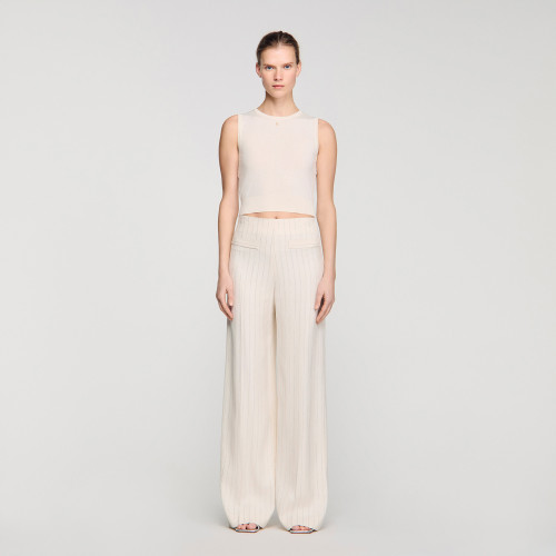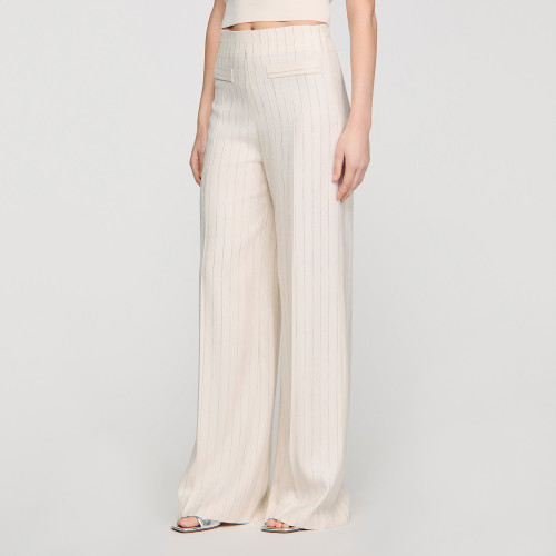 Straight, wide-leg striped trousers with a high waist and side zip fastening.