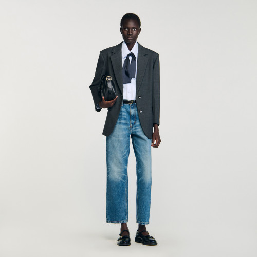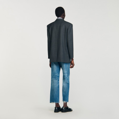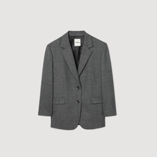 Caviar-textured suit jacket with lapel collar and long sleeves.