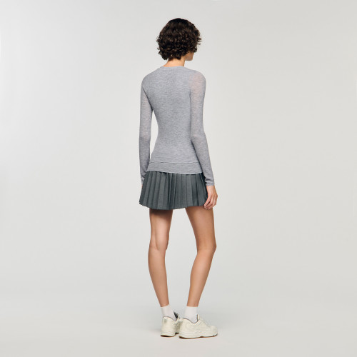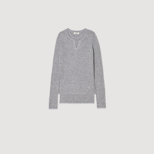 Layered-effect long-sleeved jumper made of a 100% wool fine rib knit and with tone-on-tone Sandro embroidery on the bottom.